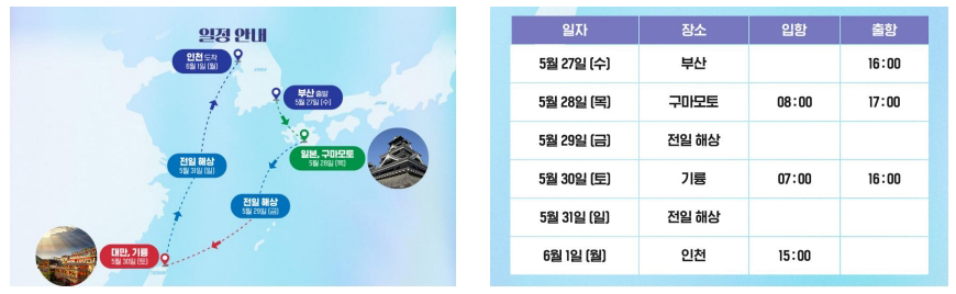 🚢 부산 출발 - 구마모토(일본) - 전일해상 - 기륭(대만) - 전일해상 - 인천 도착