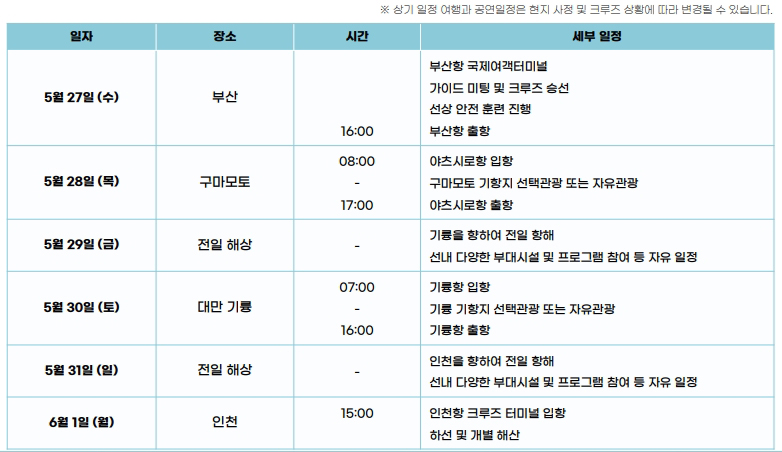 ( ※ 선실 배정, 정찬식사 입장 순서는 선사에 의해 임의 지정됩니다. )
